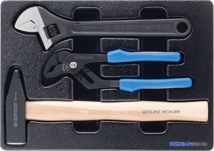 | Комплектация | • Ключ разводной Chrome серии 3611-12R - 300 мм; • Захват переставной серии 6511-10A - 250 мм; • Молоток квадратный серии 7821-80 - 800 гр. |