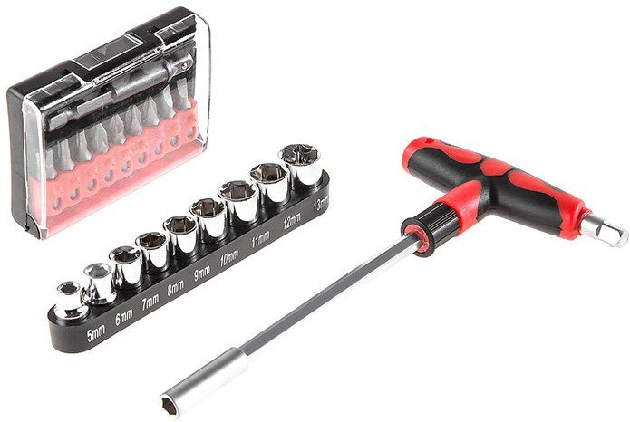 Код товара: 1169728 Рейтинг: 51 5| -29,84 набор торцевых головок и бит, 19 предметов
