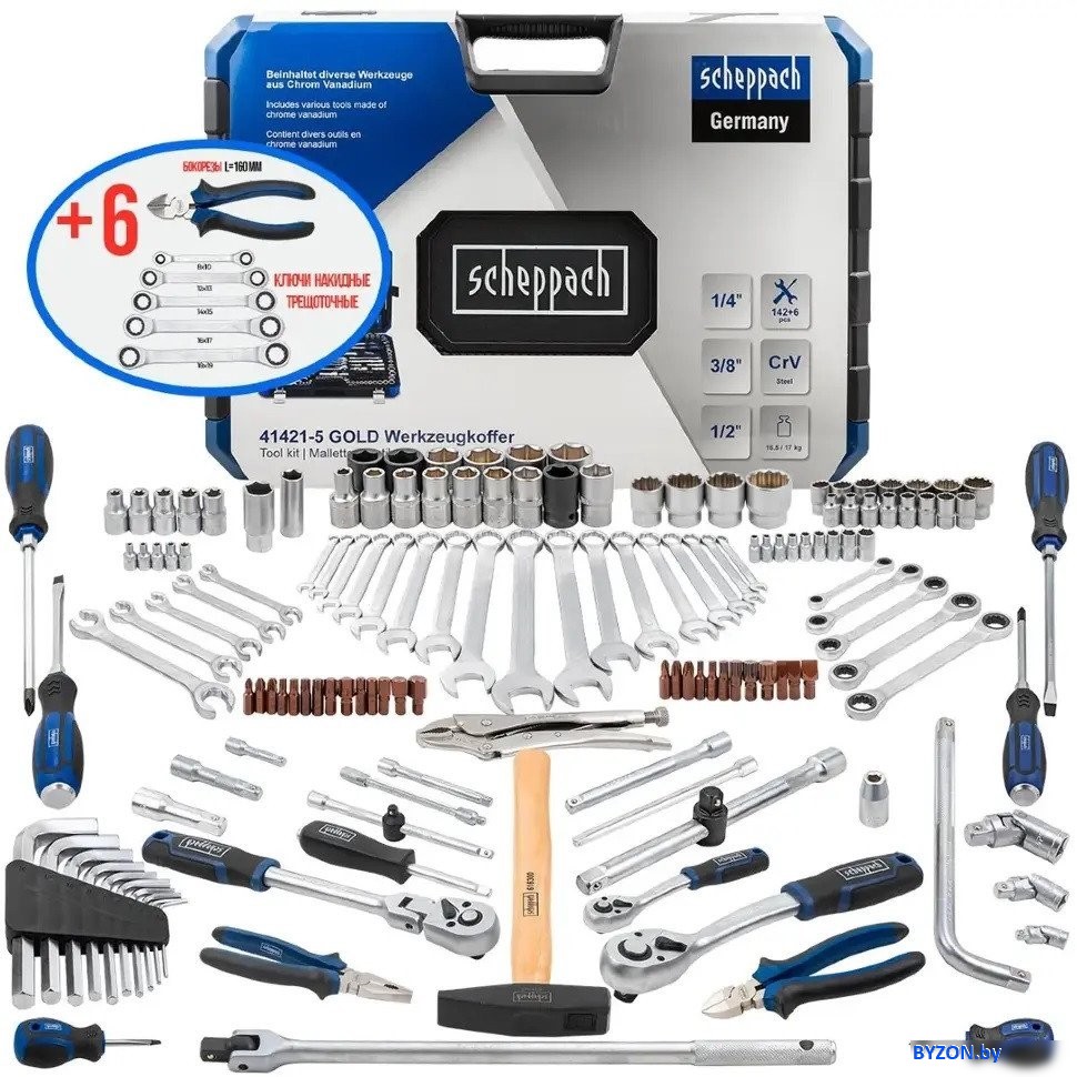 Универсальный набор инструментов Scheppach Sch-41421-5 Gold (148 предметов) - купить в Минске