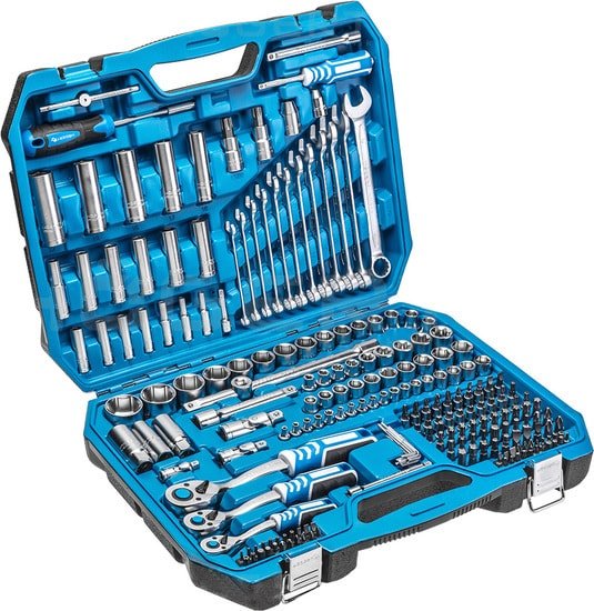| Комплектация | - Комбинированные ключи: 8 / 9 / 10 / 11 / 12 / 13 / 14 / 15 / 16 / 17 / 18 / 19 мм- Трещотка 1/2” с 72 зубьями- Головки торцевые 1/2”: 10 / 11 / 12 / 13 / 14 / 15 / 17 / 19 / 20 / 21 / 22 / 24 / 27 / 30 / 32 мм- Головки глубокие 1/2”: 16 / 17 / 18 / 19 / 22 мм- Головки свечные шестигранные 1/2”: 16 / 21 мм- Головки Torx 1/2”: E18 / E20 / E22 / E24- T-образный вороток-удлинитель 1/2” 254 мм- Удлинитель 1/2” 125 мм- Шарнир карданный 1/2”- Битодержатель 1/2” для бит 5/16”- Торцевые насадки 1/2”: T55/ T60- Трещотка 3/8” с 72 зубьями- Головки торцевые 3/8”: 10 / 11 / 12 / 13 / 14 / 15 / 16 / 17 / 18 / 19 мм- Головки глубокие 3/8”: 10 / 11 / 12 / 13 / 14 / 15 мм- Головки Torx 3/8”: E8 / E10 / E12 / E14 / E16- Головка свечная шестигранная 3/8” 18 мм- Шарнир карданный 3/8”- Удлинитель 3/8”, 125 мм- Битодержатель 3/8” для бит 5/16”- Трещотка 1/4” с 72 зубьями- Головки торцевые 1/4”: 4 / 4,5 / 5 / 5,5 / 6 / 7 / 8 / 9 / 10 / 11 / 12 / 13 / 14 мм- Головки торцевые глубокие 1/4”: 4 / 5 / 6 / 7 / 8 / 9 / 10 мм- Головки Torx 1/4”: E4/ E5/ E6/ E7/ E8- Шарнир карданный 1/4”- Вороток Т-образный 1/4” 115 мм- Отвертка-вороток 1/4”- Отвертка с держателем для бит 1/4”- Удлинители 1/4” 50 и 100 мм- Биты 5/16”, 30 мм:T25 / T27x2 / T30x2 / T35x2 / T40x3 / T45x2 / T50x2H5,5 / H6x2 / H7 / H8SL6 / SL6,5 / SL8 ммPH3 / PH4PZ3 / PZ4M5/ M6 / M8 / M10- Отверточные насадки 1/4”:SL4 / SL5,5 / SL6,5 / SL7 ммPH1/ PH2/ PH3PZ1 / PZ2 / PZ3T8 / T9 / T10 / T15 / T20 / T25 / T27 / T30 (TORX)T8/ T9/ T10/ T15/ T20/ T25/ T27/ T30 (TORX с отверстием)H3/ H4/ H5/ H6- Отверточные биты 1/4”, 25 мм:SL4/ SL5/ SL5,5 ммPH1/ PH2PZ1 / PZ2T8/ T10/ T15/ T20/ T25 (TORX)T10/ T15/ T20/ T25/ T40 (TORX с отверстием)M5 / M6 / M8TRI-WING 1 / 2 / 3TORQ 6 / 8 / 10SQUARE 1 / 2SERVICE 4 / 6 / 8H3 / H4 / H5 / H6H3 / H4 / H5 / H6- Г-образные шестигранные ключи: 1,27x2 / 1,5x2 / 2x2 / 2,5x2 / 3x2 / 4x2 / 5 мм |