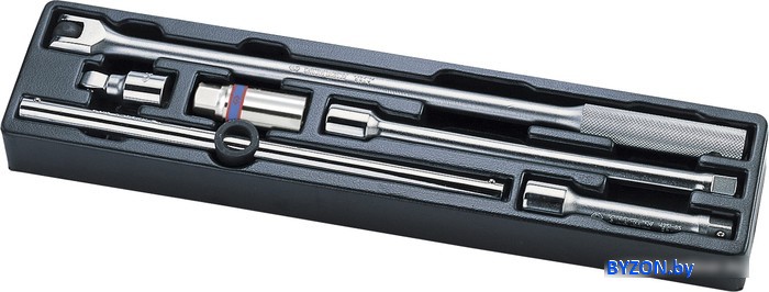 | Комплектация | - Вороток 1/2", 450 мм, с шарниром KING TONY 4452-18FR - Вороток 1/2", 300 мм, скользящий KING TONY 4572-12 - Удлинитель 1/2", 250 мм KING TONY 4251-10R - Удлинитель 1/2", 125 мм KING TONY 4251-05R - Удлинитель 1/2", 50 мм, 15 градусов, с шаровым окончанием KING TONY 4223-02R - Головка свечная шестигранная 1/2", 21 мм, L = 70 мм, резиновый фиксатор KING TONY 463521R |