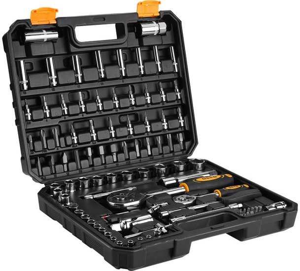 | Комплектация | Головки свечные *2 шт. (1/2"x16,21mm)Глубинные головки 1/4" *8 шт. (6,7,8,9,10,11,12,13мм)Биты-головки *17 шт. (SL4, 5.5, 7, PH1, 2,PZ1, 2, H3, 4, 5, 6,T8,10, 15, 20,25,30)Биты 25L *13 шт. (SL3,4,5,PH1,2,3,H4,5,6,T10,15,20,A.D.)Биты 8мм *15 шт. (SL8,10,12,PH3,4,PZ3,4,H8,10,12,14,T40,45,50,55)Головки 1/4" *12 шт. (4,4.5,5,5.5,6,7,8,9,10,11,12,13мм)Головки 1/2" *12 шт. (10,11,12,13,14,15,16,17,18,19,20,22мм)Адаптер *2 шт. (1/4"x6.35мм, 1/2"x8мм)Универсальный шарнир *2 шт. (1/4",1/2")Удлинители *3 шт. (1/4"x2,4", 1/2"x5")Вороток *1 шт. 1/4"Держатель для головок *1 шт. 1/4"Гаечный ключ с трещоткой *2шт. (1/4",1/2")Шестигранный ключ *3 шт. (1.5,2,2.5)Гибкий стержень *1 шт. 1/4" |