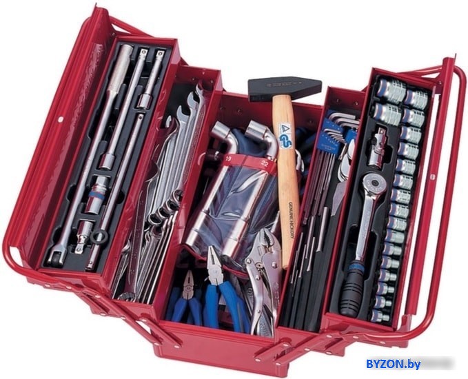 | Комплектация | Отсек 1, Набор торцевых головок KING TONY 9-4319MRГоловки и принадлежности 1/2" (12,7 мм):Головки торцевые стандартные 6-гранные: 10, 11, 12, 13, 14, 15, 16, 17, 18, 19, 20, 21, 22, 23, 24, 27, 30, 32 ммТрещотка: длина 250 мм, 32 зубца, флажковый механизм переключения реверса, насечка на рукояткеКардан: длина 77,5 ммОтсек 2, Набор принадлежностей для торцевых головок KING TONY 9-4116FRПринадлежности 1/2" (12,7 мм):Вороток с шарниром: длина 450 ммВороток скользящий (ползунок): длина 300 ммГоловка свечная шестигранная: 21 мм, длина 70 мм, резиновый фиксаторУдлинители: длина 125 и 250 ммУдлинители: длина 50 мм, шаровый наконечник 15 градусовОтсек 3Ключи комбинированные: 8, 9, 10, 11, 12, 13, 14, 15, 16, 17, 18, 19, 21, 22, 23, 24, 27, 30, 32 ммОтсек 4Набор Г-образных шестигранников с шаровым окончанием KING TONY 20109MR шестигранники: 1.5, 2, 2.5, 3, 4, 5, 6, 8, 10 ммНабор Г-образных TORX, T10-T40, с отверстием, 7 предметов KING TONY 20407PR TORX: T10, T15, T20, T25, T27, T30, T40Зубила: 20 x 175 мм, 26 x 300 ммВыколотки: 2x30 мм, 3x40 мм, 4x50 мм, 5x55 мм, 6x55 мм, 8x60 мм,12x70 мм, 14x75 ммОтсек 5Отвертки крестовые Phillips: №0 х 60 мм, №1 х 100 мм, №2 х 100 мм, №3 х 150 ммОтвертки шлицевые Slotted: 3 х 75 мм, 4 х 100 мм, 5 х 75 мм, 5.5 х 125 мм, 6.5 х 150 мм, 8 х 175 ммПлоскогубцы комбинированные: длина 175 ммПлоскогубцы тонконосые: длина 160 ммБокорезы силовые: длина 200 ммКусачки силовые: длина 250 ммЗахват переставной: длина 250 ммЗажим с фиксатором, с закругленными губками: длина 250 ммКлюч разводной Chrome: длина 300 ммМолоток квадратный: вес 800 гНожовка по металлу: длина 305 ммРулетка измерительная: длина измерений до 3-х метровНабор торцевых L-образных ключей KING TONY 1812MR в виниловом чехле: 8, 10, 11, 12, 13, 14, 16, 17, 18, 19, 22, 24 мм |