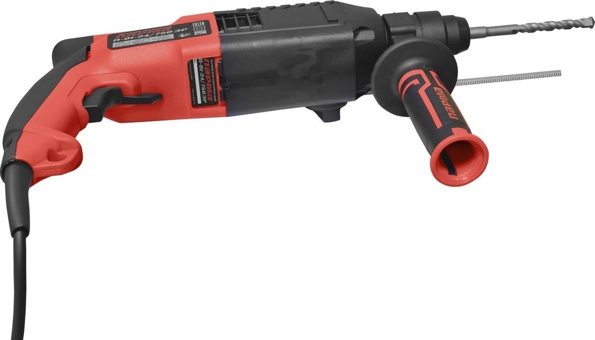 | Комплект поставки | - Перфоратор; - Ограничитель глубины сверления; - Плоское долото; - Пика-долото; - Набор буров; - Руководство по эксплуатации; - Гарантийный талон; - Кейс. |