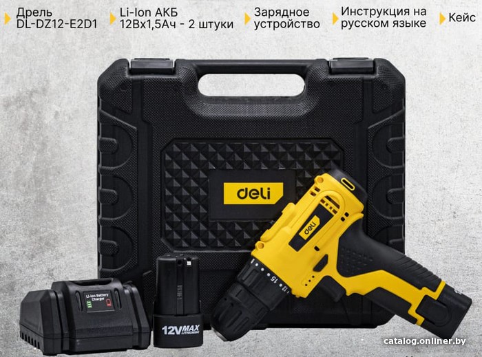 Дрель-шуруповерт Deli DL-DZ12-E2D1 102880 (с 2-мя АКБ, кейс) - купить в Минске