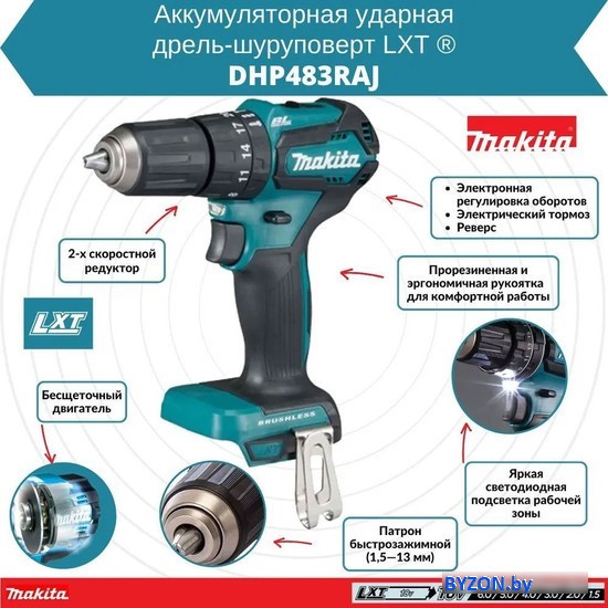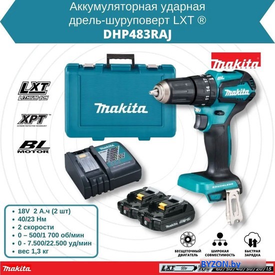 Ударная дрель-шуруповерт Makita DHP483RAJ (без АКБ, кейс) - купить в Минске