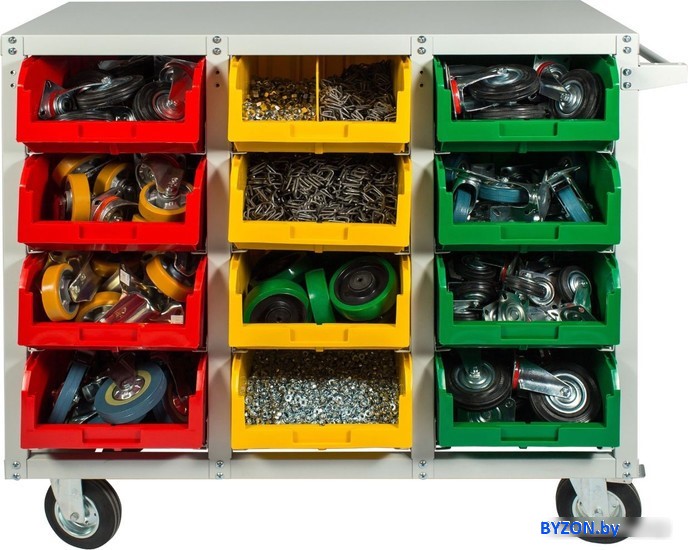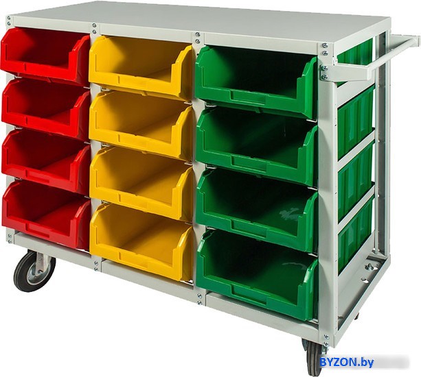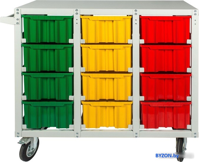 Информация | ? Мобильный односторонний стеллаж с направляющими V4-12 ячеек (200К) для контейнеров V-4. ? Грузоподъемность до 500кг. ? Подходит для автомастерских, строительных магазинов, складов. ? Может быть использован с колесами и ручкой для удобства перемещения. ? Быстрый и легкий доступ к содержимому ящиков. ? Ящики открытого типа для удобства поиска нужных предметов. ? Легко извлекать и устанавливать ящики. ? Поставляется в разобранном виде, включая металлический каркас, ящики, комплект колес и ручку. ?? Температурный режим эксплуатации от +20 до +70С. |