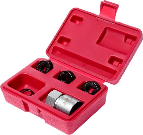 | Информация | - Инструмент для нарезания/восстановления резьбы JTC JTC-5201 предназначен для использования в сфере ремонта небольших автомобилей. - Уникальная конструкция позволяет быстро и аккуратно восстанавливать резьбу без повреждения уцелевших участков. - Набор включает инструменты для восстановления резьбы шпилек колес (М12х1.25, М12х1.5, М14х1.5) в удобном кейсе. |