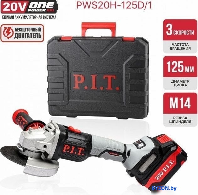 Угловая шлифмашина P.I.T. PWS20H-125D/1 (с 1-им АКБ, кейс) - купить в Минске