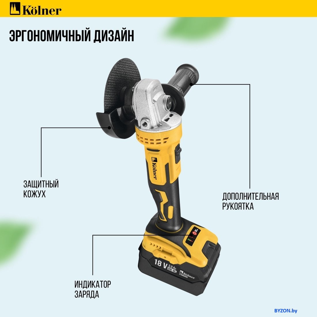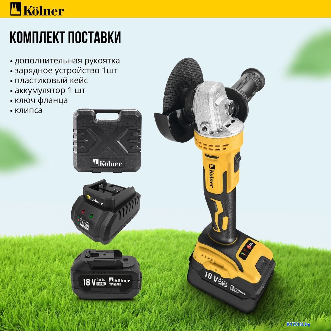 Угловая шлифмашина Kolner KAG 18BL-125-1K (с 1-им АКБ) - купить в Минске