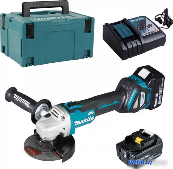 Комплект поставки | - Угловая шлифмашина; - 2 АКБ BL1850B; - з/у DC18RC; - Боковая рукоятка; - Зажимная гайка; - Кейс; - Инструкция; |