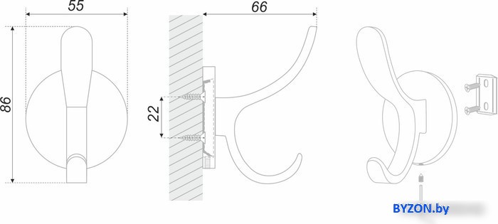 Код товара: 4242818 Рейтинг: 55 8| -57,63 двухрожковый, монтаж со скрытым креплением, макс. нагрузка 8 кг, хром