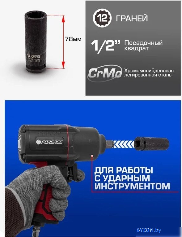 Код товара: 4885502 Рейтинг: 60 8| -54,87 головка простая/универсальная, профиль головки: глубокая двенадцатигранная, размер мама (F): 1/2"