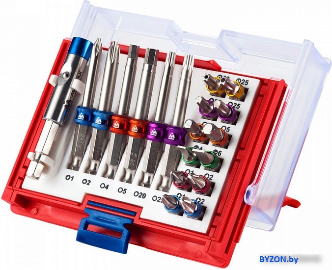 | Комплектация | - Держатель вставок (бит) с фиксатором / длина 66 мм; - Биты 1/4" (6.35 мм) / длина 25 мм: • крестовые Phillips №1, №2 • крестовые Pozidrive №1, №2 • шлицевые Slotted 4, 6 мм • шестигранные Hex 4, 5 мм • Torx T20, T25 • Torx сотверстием T20H, T25H - Биты 1/4" (6.35 мм) / длина 65 мм: • крестовые Phillips №1, №2 • шестигранные Hex 4, 5 мм • Torx T20, T25 |