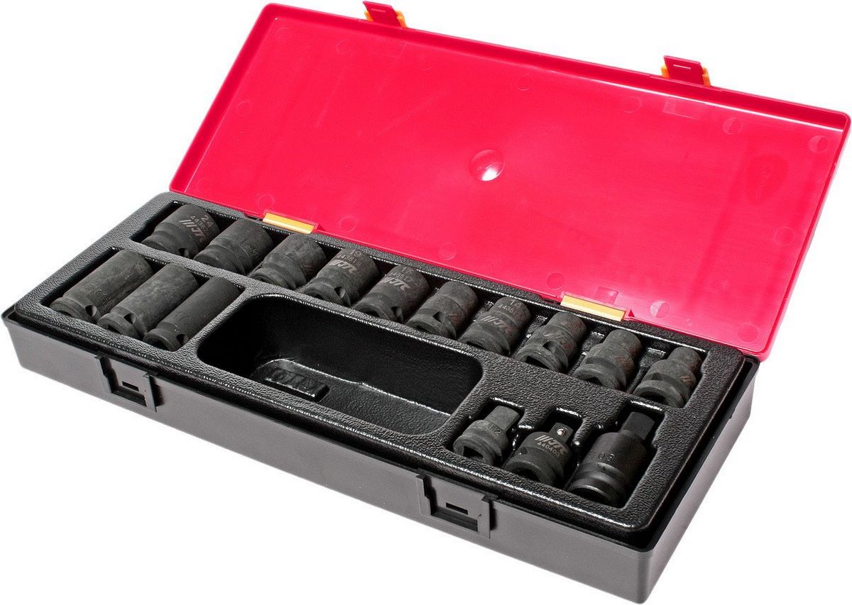 | Комплектация | - 1/2" DR.6PT ударная головка: 10 мм., 12 мм., 13 мм., 14 мм., 15 мм., 17 мм., 19 мм., 21 мм., 22 мм., 24 мм. - 10 шт. - 1/2" DR.6PT ударные глубокие головки: 17 мм., 19 мм., 21 мм. - 3 шт. - ударный адаптер F3/8"XM1/2" - 1 шт. - ударный адаптер М1/2"хF3/8" - 1 шт. - 1/2 "DR. ударный универсальный шарнир - 1 шт. |