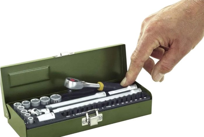 | Информация | ? Набор головок, бит Proxxon Микро компакт / 23078 включает в себя трещотку, отверточные биты и торцевые головки изготовленные из хром-ванадиевой стали. ? Трещотка изготовлена из единой заготовки хром-ванадиевой стали, закалена и имеет противоскользящую рукоять из масло-кислотостойкой термопластичной резины (TPR). ? Отверточные биты изготовлены из хром-ванадиевой стали, а все рабочие наконечники из высококачественного хромо-кремниево-марганцево молибденового сплава. ? Торцевые головки и прочие принадлежности также изготовлены из хром-ванадиевой стали с высоким содержанием углерода, обеспечивающим постоянную твердость. ?? Тонкостенная конструкция обеспечивает удобный доступ, сохраняя при этом прочность для тяжелых работ. ? Конусные фаски головки облегчают точную посадку при работе, а фрезерованные стенки обеспечивают точность посадки хвостовика. |