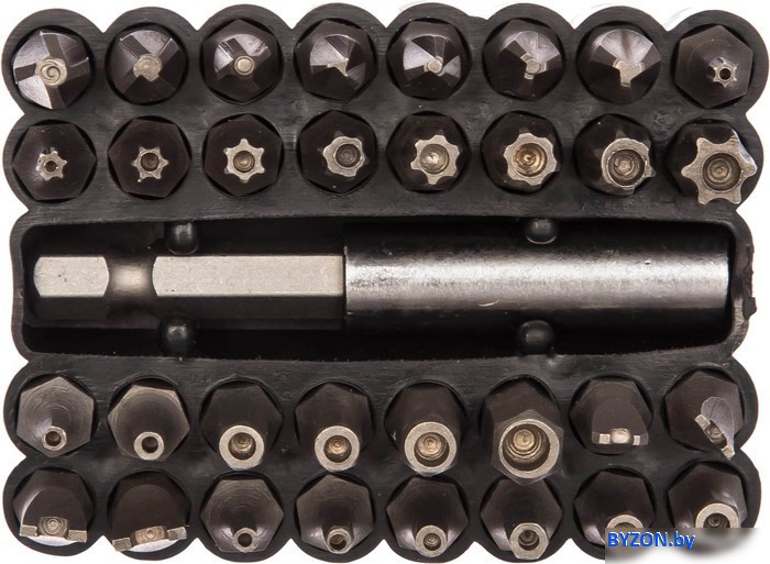 | Комплектация | 32 биты, 25 мм: - Double Pin 4, 6, 8, 10 - TORQ 6, 8, 10 - TX HOLE T8, 10, 15, 20, 25, 27, 30, 35, 40 - TRY WING 1, 2, 3, 4 - HEX HOLE 2, 2.5, 3, 4, 5, 6 - HEX HOLE 5/64", 3/32", 7/64", 1/8", 9/64", 5/32" Магнитный адаптер |