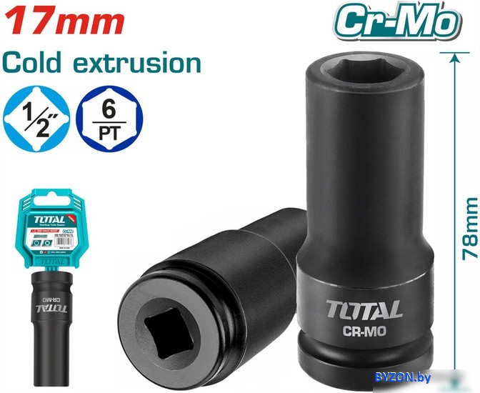 | Комплектация | Торцевая головка удлиненная ударная 1/2" 17 мм TOTAL THDIS12171L - 1 шт. |