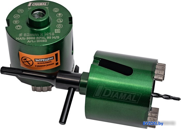 | Информация | Алмазное сверло для подрозетников DIAMAL предназначено для бурения в бетоне, слабо армированном бетоне и кирпиче перфораторами мощностью от 600 Вт. без охлаждения и только в безударном режиме. В комплект входит центрирующее твердосплавное сверло, адаптер M16 / SDS Plus, клин для выбивания. Высококачественные сегменты специальной формы, приваренные лазером к корпусу, придают коронке высокую скорость сверления и большой ресурс работы . |