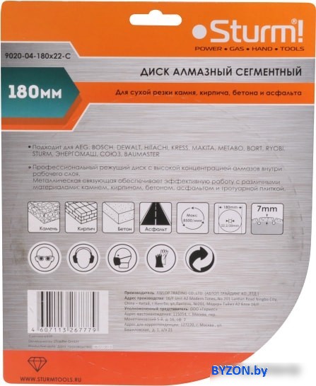 Отрезной диск алмазный Sturm 9020-04-180x22-C - купить в Минске