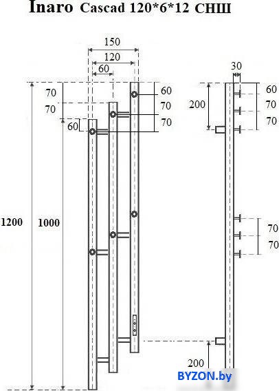 Полотенцесушитель Маргроид Ferrum Inaro 3 Cascade СНШ 120*6*12 Графит, скрытого монтажа, таймер справа - купить в Минске