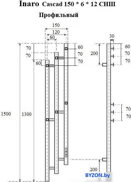 Полотенцесушитель Маргроид Ferrum Inaro 3 Cascade СНШ профильный 150*6*12 Графит, скрытого монтажа, таймер справа - купить в Минске