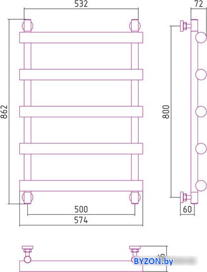 Код товара: 3419612 Рейтинг: 443 1| водяной, "лесенка", нержавеющая сталь, подключение нижнее/диагональное, 86.2x57.4 см, цвет: полированная сталь