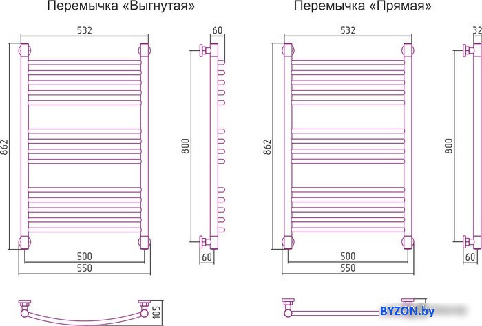 Код товара: 3419635 Рейтинг: 231 9| -99,15 водяной, "лесенка", нержавеющая сталь, подключение нижнее/диагональное, 86.2x55 см, цвет: полированная сталь