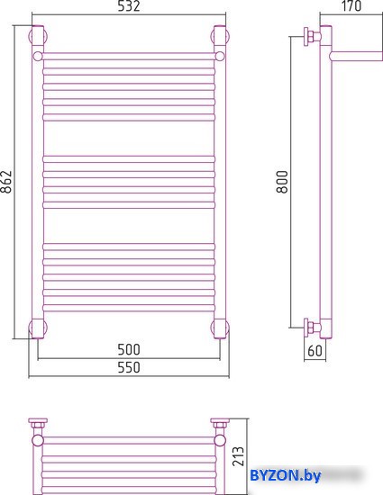 Код товара: 3419683 Рейтинг: 371 1| водяной, "лесенка", нержавеющая сталь, подключение нижнее/диагональное, 86.2x55 см, цвет: полированная сталь