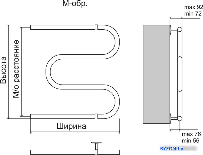 Код товара: 2428734 Рейтинг: 48 1| -12,37 водяной, М-образный, нержавеющая сталь, подключение боковое, 53.2x50 см