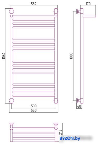 Код товара: 3796147 Рейтинг: 581 2| водяной, "лесенка", нержавеющая сталь, подключение нижнее/диагональное/боковое, 106.2x55 см, цвет: серебристый