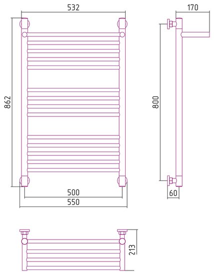 Код товара: 3796236 Рейтинг: 545 2| водяной, "лесенка", нержавеющая сталь, подключение нижнее/диагональное/боковое, 86.2x55 см, цвет: серебристый