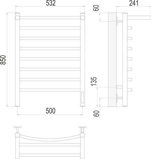 Код товара: 3662226 Рейтинг: 109 2| -42,94 электрический, "лесенка", нержавеющая сталь, подключение нижнее (500 мм, 1/2"), терморегулятор, 85x53.2 см, цвет: хром