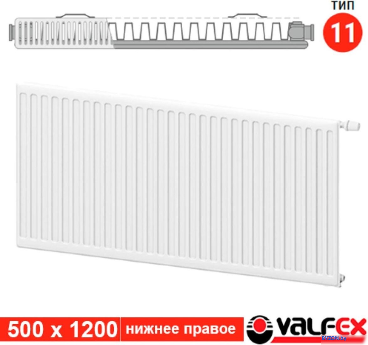 Стальной панельный радиатор Valfex Steel VC R 11 500х1200 VF.VC.R.11.500.1200 (с нижним подключением) - купить в Минске