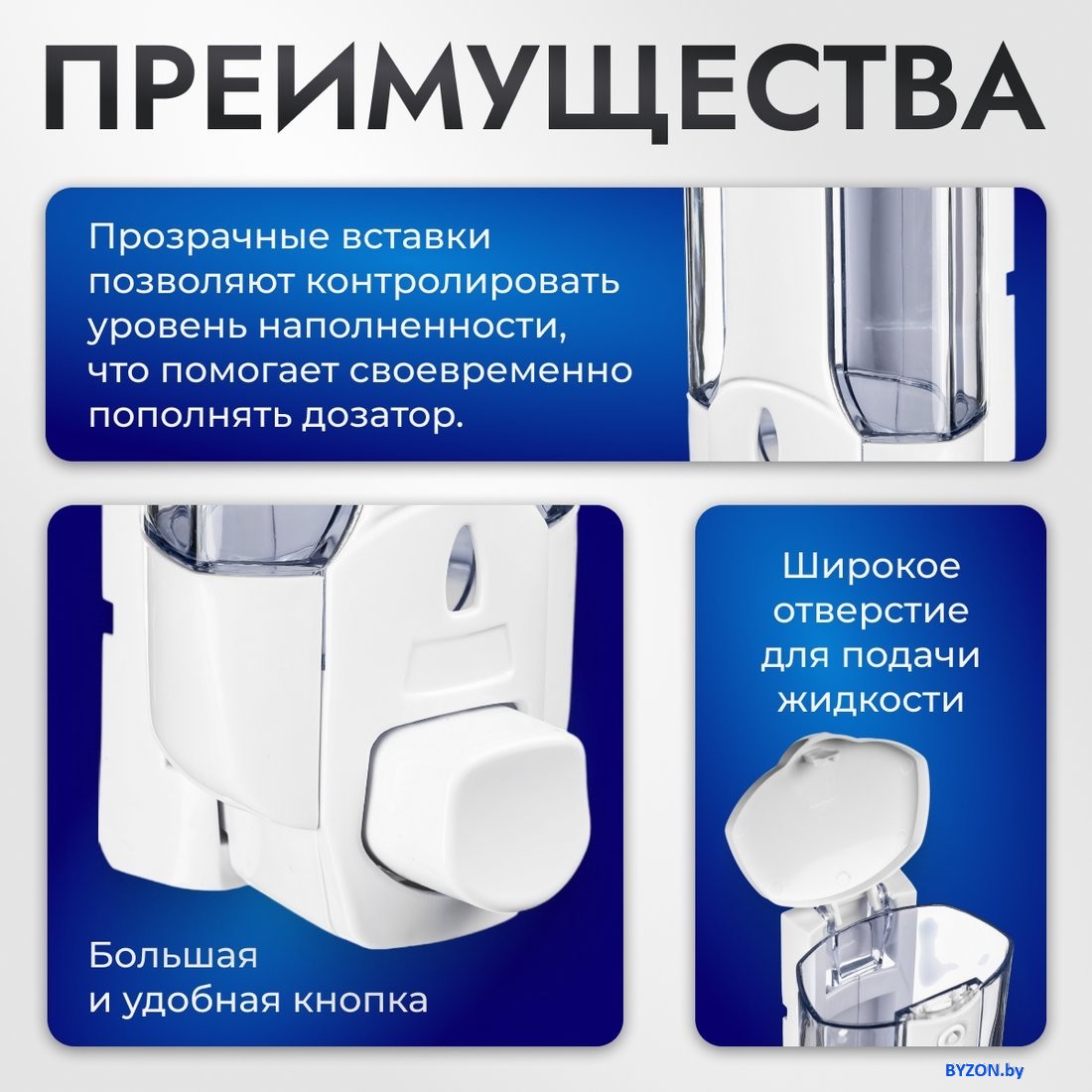 Дозатор для жидкого мыла Saniteco M-1628 (белый) - купить в Минске