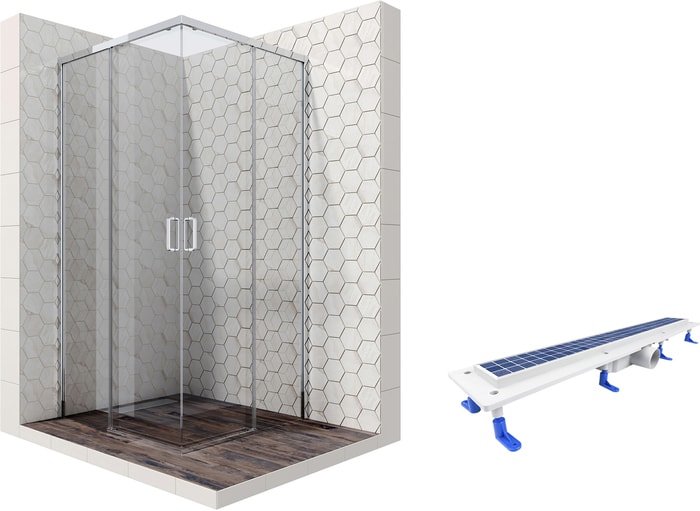 | Информация | Комплект душевого уголка с линейным трапом |