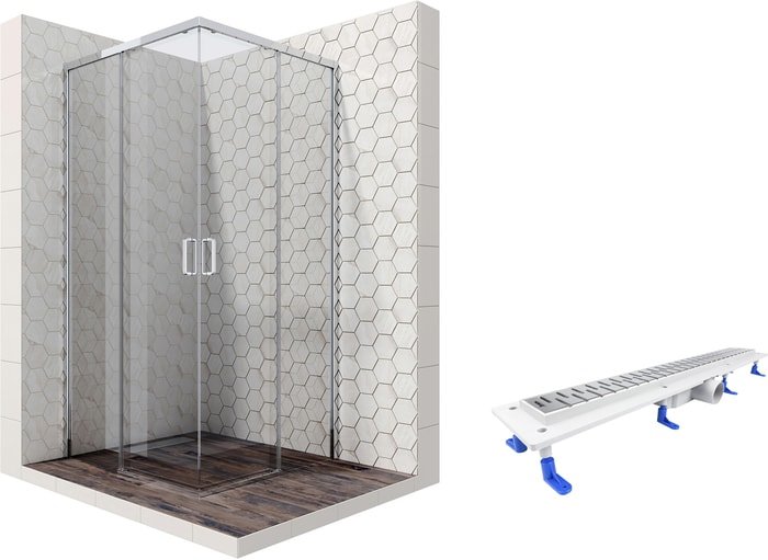 | Информация | Комплект душевого уголка с линейным трапом |