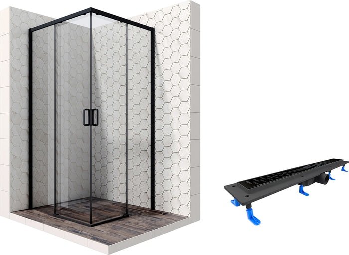 | Информация | Комплект душевого уголка с линейным трапом |