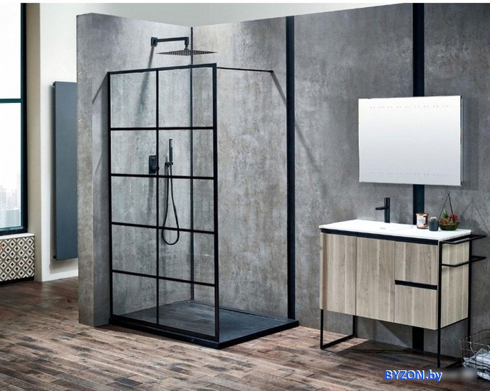 Душевая стенка Calani Soleo Walk In 90x195 CAL-K6010 (черный/прозрачное стекло) - купить в Минске