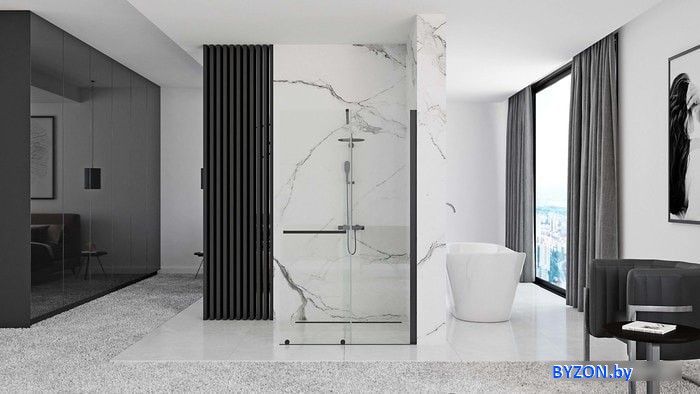 Душевая стенка Rea Cortis 120 (черный/прозрачное стекло) - купить в Минске
