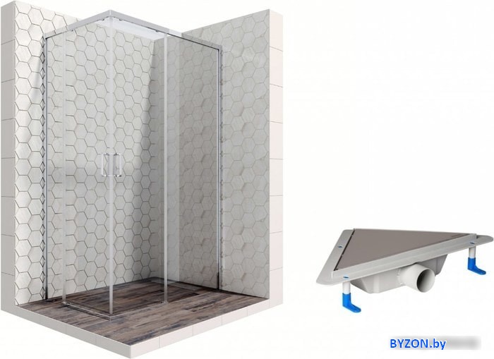 | Информация | Комплект душевого уголка с угловым трапом |