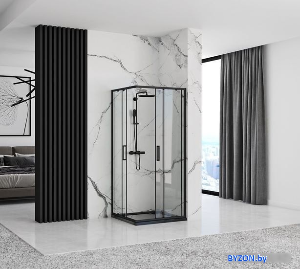 Душевой уголок Rea Punto 80x80 (черный/прозрачное стекло) - купить в Минске