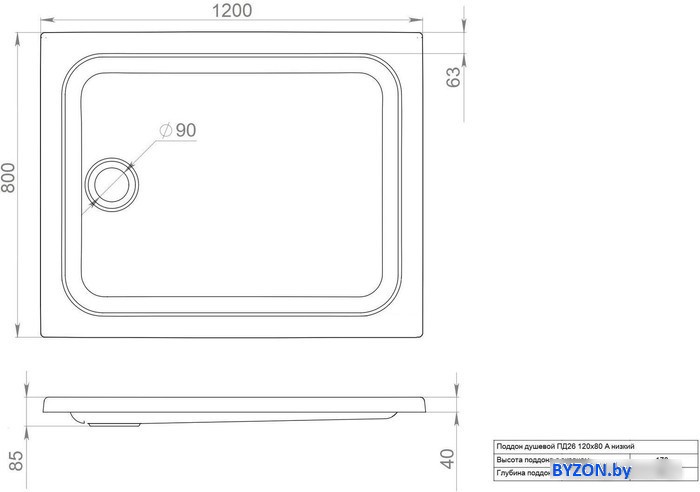 Душевой поддон Triton ПД26 120x80 - купить в Минске