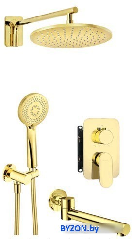 | Комплектация | верхний душ, ручной душ (лейка), держатель лейки, шланг, смеситель, излив для ванны |