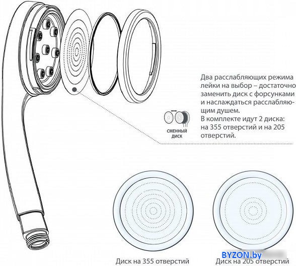 | Количество режимов ручного душа | 2 (первый диск установлен, второй диск в комплекте) |