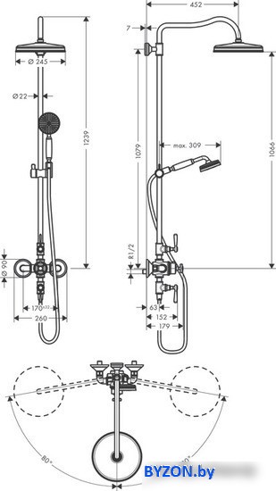 | Диаметр (ширина) верхнего душа | 245 мм |