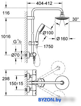 | Диаметр (ширина) верхнего душа | 160 мм |