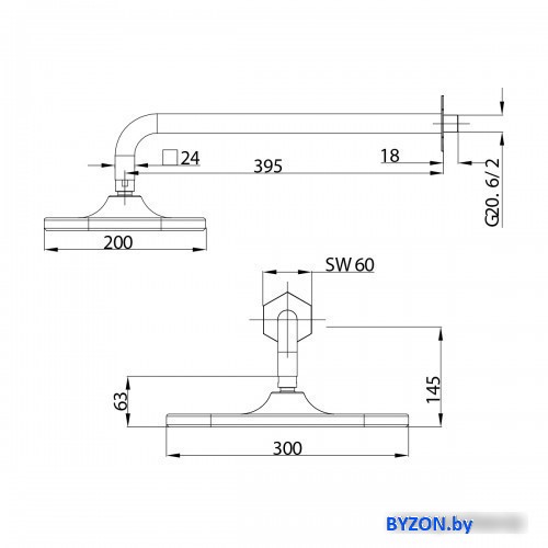 | Диаметр (ширина) верхнего душа | 300 мм |