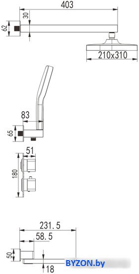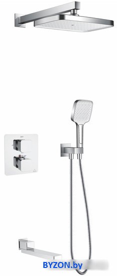 | Комплектация | верхний душ, ручной душ (лейка), держатель лейки, шланг, смеситель, излив для ванны |