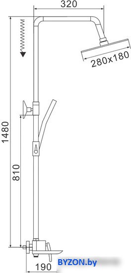 | Диаметр (ширина) верхнего душа | 280 мм |